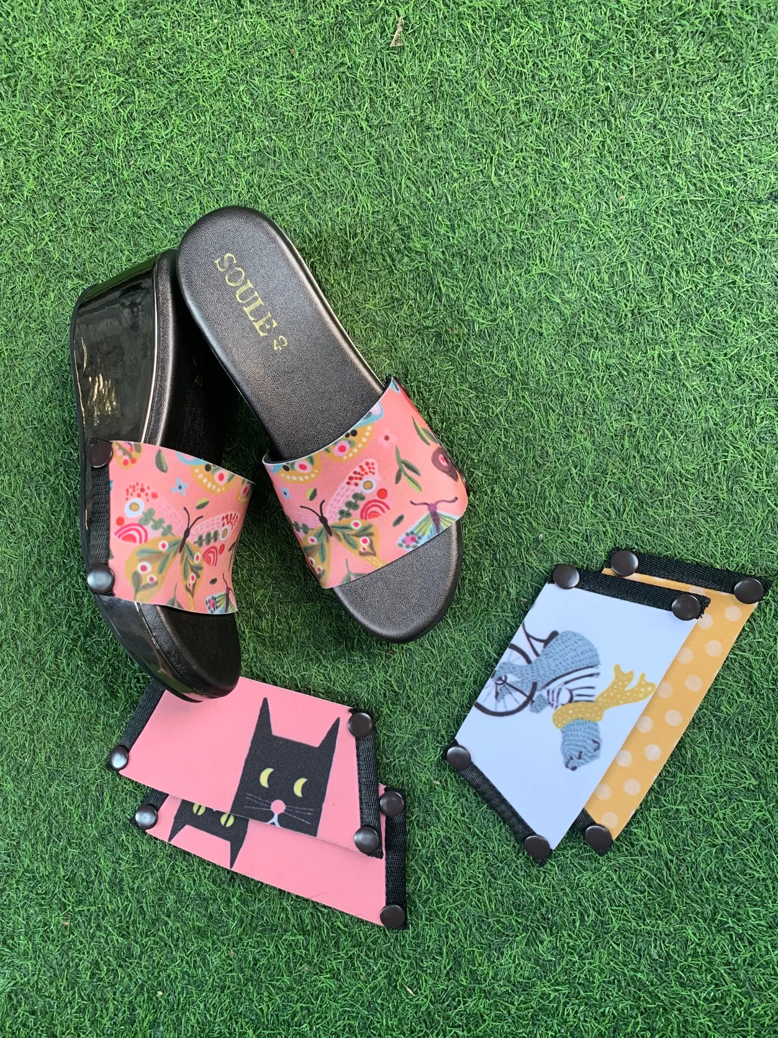 Purr-fectly Adorable + OMG Chic + Playful Fluid Art (1 sole + 3 straps)